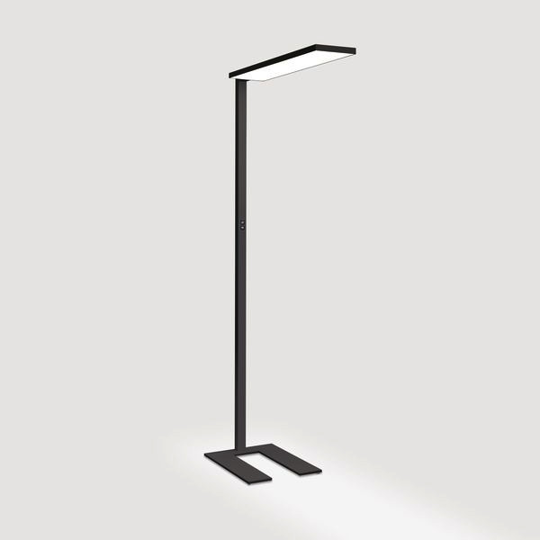Cubic-F1. LED. Stehleuchte. Filigraner Leuchtenkopf mit 25mm minimalistischer Bauhöhe. Beleuchtungskörper aus hochwertigem Aluminiumprofil. Oberfläche Jet Black. Lichtcharakteristik: Direkt-/ indirektstrahlend. Farbtemperatur: 3500K (Neutral White). Farbwiedergabeindex (Ra): >80. Microprismenoptik aus Spezialacrylglas zur Reduktion der Leuchtdichte in Office-Bereichen. UGR<=19. Stufenlos dimmbarer Multisensor als Stand-Alone-Version. LxBxH (Leuchtenkopf, rechteckig/Mast). L=900mm. B=200mm. H=2000/25mm. High-Power-Bestromung. 16000lm. 114W. 20,1kg. Binning initial <= MacAdam 3. U-förmige Fußplatte passend zur Leuchtenfarbe lackiert. Stecker Schuko CEE 7/7 (Type E+F). IP20. Schutzklasse I. CE-, UKCA Kennzeichnung. IK02. 220-240V. 50-60 Hz. Lichtstromrückgang von max. 0,4%/1.000 Betriebsstunden. Nennausfallrate von max. 0,2%/1.000 Betriebsstunden. L80B10 (tq 25°C) = 50.000h. 5 Jahre Garantie. Hersteller: Lightnet GmbH, nach ISO 9001:2015 und 50001:2018 zertifiziert.
