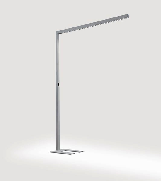 Matric-SX. LED. Stehleuchte mit einem Leuchtenkopf, Beleuchtungskörper aus hochwertigem Aluminiumprofil. Oberfläche Radiant Silver. Lichtcharakteristik: Direkt-/ indirektstrahlend. Farbtemperatur: 4000K (Cool White). Farbwiedergabeindex (Ra): >80. Lens Louvre: Präzisionslinsen mit Abblendraster für breite, rotationssymmetrische Lichtstärkeverteilung bei gleichzeitig hoher Blendungsbegrenzung. BAP-tauglich für Office-Anwendungen. UGR<=19. Reflektor: Satin Silver. Stufenlos dimmbarer Multisensor als Stand-Alone-Version. LxBxH (Leuchtenkopf, rechteckig/Mast). L=1570mm. B=40mm. H=2200/40mm. Medium-Power-Bestromung. 10100lm. 66W. 23,8kg. Binning initial <= MacAdam 3. U-förmige Fußplatte passend zur Leuchtenfarbe lackiert. Stecker Schuko CEE 7/7 (Type E+F). IP20. Schutzklasse I. CE-, UKCA Kennzeichnung. IK02. 220-240V. 50-60 Hz. Lichtstromrückgang von max. 0,3%/1.000 Betriebsstunden. Nennausfallrate von max. 0,2%/1.000 Betriebsstunden. L85B10 (tq 25°C) = 50.000h. 5 Jahre Garantie. Hersteller: Lightnet GmbH, nach ISO 9001:2015 und 50001:2018 zertifiziert.