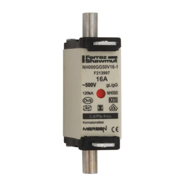 | Kurzbeschreibung | Sicherungseinsatz NH gG Größe 000 AC500V DC250V 16A mit spannungsfreie Grifflaschen SGL und Doppelkennmelder |