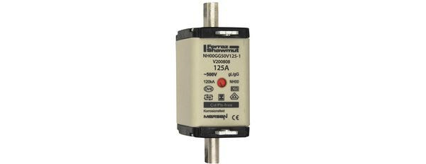 | Kurzbeschreibung | Sicherungseinsatz NH gG Größe 00 AC500V DC250V 125A mit spannungsfreie Grifflaschen SGL und Doppelkennmelder |