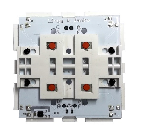 KNX eco+ UP Tastsensor 4fach, 55x55mm, 4 Binär Ein- Ausgänge inklusive KNX Busankoppler, mit integriertem Temperatur- und Feuchtesensor, ohne Wippen, ohne Anschlusskabel