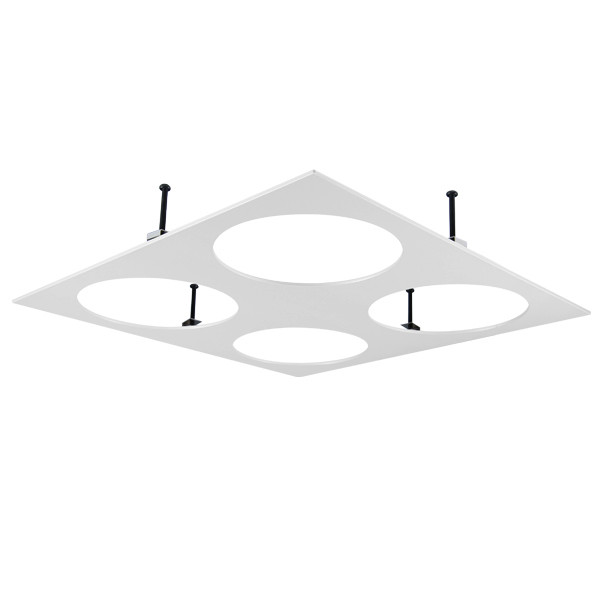 4-flammig, Bauform quadratisch, Material: Metall, werkzeugloser Deckeneinbau über einstellbare Spannfedern für variable Deckenstärke, Einbautiefe ET abhängig von gewählten Lichtköpfen, Lichtköpfe und Versorgungseinheiten separat bestellen.