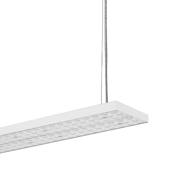 Linearleuchte für Pendelmontage, symmetrisch und breitstrahlende Lichtverteilung (Abstrahlwinkel 60°), hohe Wartungsfreundlichkeit, keine UV- und Wärmestrahlung, Leuchtengehäuse und teilintegriertes Gehäuse für Betriebsgerät aus Stahlblech, Linsenoptik aus PMMA transparent hochglanz, höhenverstellbare Drahtseilabhängung mit Deckendose und Einspeisung (Länge: 1500 mm, Kabel transparent), Betriebsgerät (LED-Konverter) integriertLinearleuchte für Pendelmontage, symmetrisch und breitstrahlende Lichtverteilung (Abstrahlwinkel 60°), hohe Wartungsfreundlichkeit, keine UV- und Wärmestrahlung, Leuchtengehäuse und teilintegriertes Gehäuse für Betriebsgerät aus Stahlblech, Linsenoptik aus PMMA transparent hochglanz, höhenverstellbare Drahtseilabhängung mit Deckendose und Einspeisung (Länge: 1500 mm, Kabel transparent), Betriebsgerät (LED-Konverter) integriert