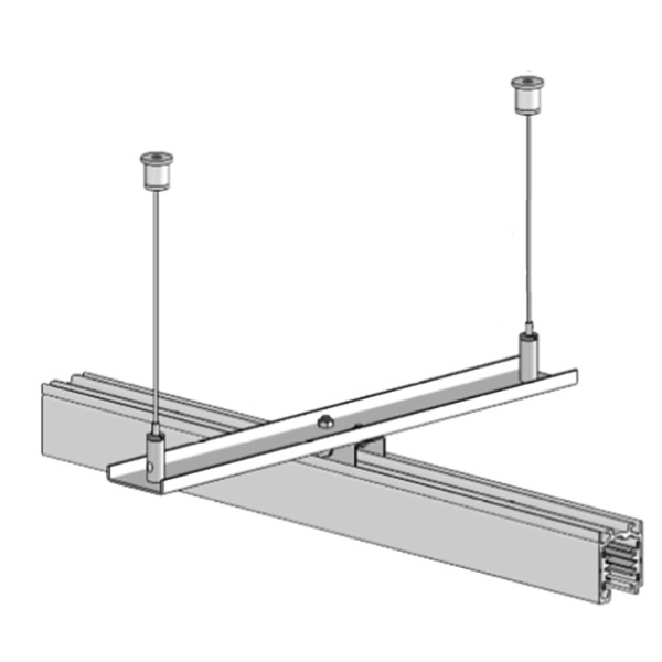Drahtseilabhängung 2-fach mit Stabilisator (Länge: 1500 mm, höhenverstellbar), zwei Deckenbefestiger zum Anschrauben, Stabilisator aus Stahlblech, Stromschienenhalter aus verzinktem StahlblechDrahtseilabhängung 2-fach mit Stabilisator (Länge: 1500 mm, höhenverstellbar), zwei Deckenbefestiger zum Anschrauben, Stabilisator aus Stahlblech, Stromschienenhalter aus verzinktem Stahlblech