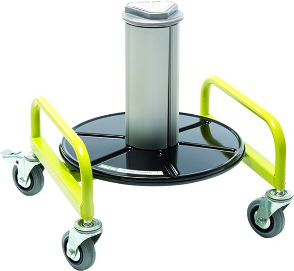 Roll..Profi Vario Standsicher auf Gummifüßen oder fahrbar auf feststellbaren Lenkrollen sichert der Roll..Profi Vario den rationellen Umgang mit allen in Ringform konfektionierten Materialien, die vollmetallische Ausführung sichert lange Lebensdauer, die ausgeklügelte Technik hohe Funktionalität, völlig wartungsfreie Bauform, auch beim Einsatz im Freien, Aufnahmegestell (B x T) 510 x 460 mm, Maximalrer Kabelringdurchmesser 450 mm, Gesamthöhe 530 mm, Lieferumfang: Vario inkl. Lenkrollen
