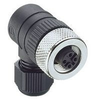Rundsteckverbinder RKCW 4/9, Stecker, 4-polig, gewinkelt, Schraubanschluss, IP67, für platzsparende Montage.