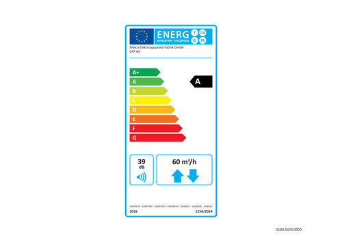 | Energieeffizienzklasse (1253/2014/EU) | A |