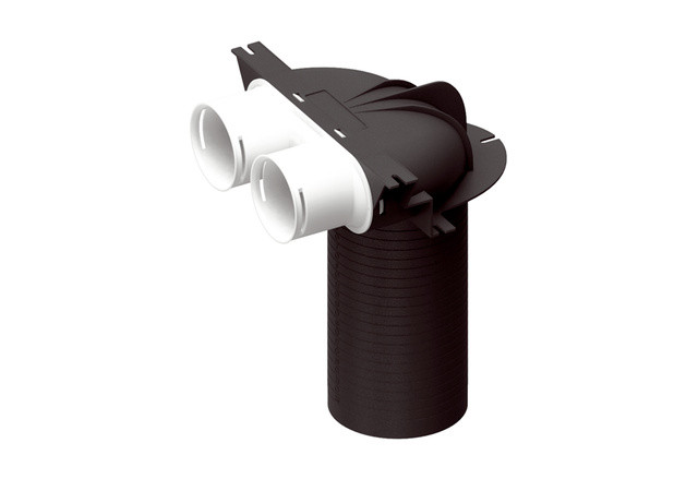 <p> - 90°-Umlenkstück aus recyclebarem Kunststoff für 2 x Flexrohre DN 75 und 1 x Übergang DN 125 für ein Zu-/Abluftventil.</p><p> - 90°-Umlenkstück bestehend aus: 1 Verlängerungsrohr DN125, 1 Enddeckel DN 125, 2 Dichtringe DN 75, 2 lösbare Sicherungs-Klammern DN75 zum Befestigen der Flexrohre, 1 Verschlussdeckel DN 75.</p><p> - Farbe anthrazit (Korpus) mit weiß/leicht transparenten Anschlussstutzen.</p><p> - Mit Einsteck-Sichtkontrolle für passgenauen und kontrollierten Flexrohr-Einschub.</p><p> - Druckstabil zum Einbetonieren in Filigran-Geschossdecke.</p><p></p><p>Artikel:</p><p>MA-U2-75</p><p> - Einbauort: Decke / Wand / Fussboden</p><p> - Material: Polypropylen (PP)</p><p> - Farbe: Anthrazit</p><p> - Gewicht: 0,59 kg</p><p> - Gewicht mit Verpackung: 1,02 kg</p><p> - Anschlussdurchmesser: 125 mm</p><p> - Nennweite: 75 mm</p><p> - Geeignet für Nennweite: 75 mm</p><p> - Breite: 290 mm</p><p> - Höhe: 332 mm</p><p> - Tiefe: 268 mm</p><p> - Breite mit Verpackung: 278 mm</p><p> - Höhe mit Verpackung: 147 mm</p><p> - Tiefe mit Verpackung: 431 mm</p>