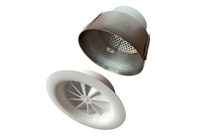 <p> - Dralldurchlass rund mit fest eingebauten Luftlenklamellen mit Diffusorring, komplett mit Anschlusskasten mit Anschluss oben.</p><p> - Anschlusskasten aus verzinktem Stahlblech.</p><p></p><p>Artikel:</p><p>WR 230T 160</p><p> - Luftrichtung: Abluft / Zuluft</p><p> - Min. empfohlene Luftmenge: 50 m3/h</p><p> - Max. empfohlene Luftmenge: 140 m3/h</p><p> - Material Gehäuse: Stahlblech, einbrennlackiert</p><p> - Farbe: weiß, ähnlich RAL 9010</p><p> - Gewicht: 0,88 kg</p><p> - Gewicht mit Verpackung: 0,88 kg</p><p> - Anschlussdurchmesser: 125 mm</p><p> - Randdurchmesser: 250 mm</p><p> - Breite: 250 mm</p><p> - Höhe: 150 mm</p><p> - Tiefe: 250 mm</p><p> - Breite mit Verpackung: 250 mm</p><p> - Höhe mit Verpackung: 150 mm</p><p> - Tiefe mit Verpackung: 250 mm</p>