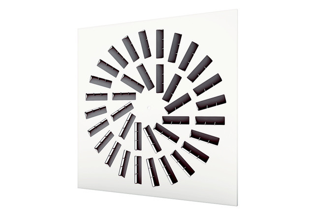 <p> - Quadratischer Dralldurchlass Typ WT, gefertigt aus Stahl, ist geeignet für die Abluft und Zuluft von sowohl gekühlter als auch beheizter Luft in Büroräumen, Sitzungssälen, Läden, Industrie usw.</p><p> - Der Dralldurchlass kann problemlos in ein abgehängtes Deckenraster eingebaut werden.</p><p> - Die Luftlenklamellen sind in schwarzem Farbton.</p><p> - Der Dralldurchlass ist konzipiert für Raumhöhen von 2,5 m bis 4 m.</p><p> - Er wird mit einem Mittenloch für Mittenbefestigung nebst Schraube und weißer Abdeckkappe geliefert.</p><p></p><p>Artikel:</p><p>WT 100 619</p><p> - Luftrichtung: Abluft / Zuluft</p><p> - Min. empfohlene Luftmenge: 410 m3/h</p><p> - Max. empfohlene Luftmenge: 600 m3/h</p><p> - Material Gehäuse: Stahlblech, einbrennlackiert</p><p> - Farbe: weiß, ähnlich RAL 9010</p><p> - Lamellenfarbe: schwarz</p><p> - Gewicht: 2,9 kg</p><p> - Gewicht mit Verpackung: 4,1 kg</p><p> - Breite: 619 mm</p><p> - Höhe: 11 mm</p><p> - Tiefe: 619 mm</p><p> - Breite mit Verpackung: 650 mm</p><p> - Höhe mit Verpackung: 50 mm</p><p> - Tiefe mit Verpackung: 650 mm</p><p> - Druckreserve Max: 35 Pa</p><p> - Druckreserve Min: 16 Pa</p>