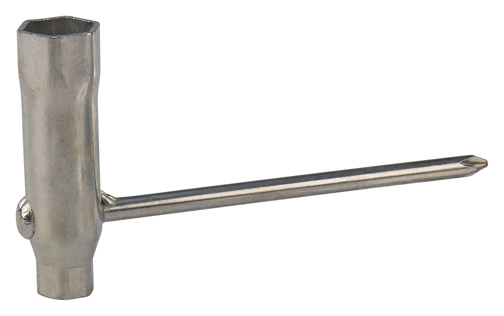 Montageschlüssel mit Steckschlüssel sowie Schraubendreher in einem