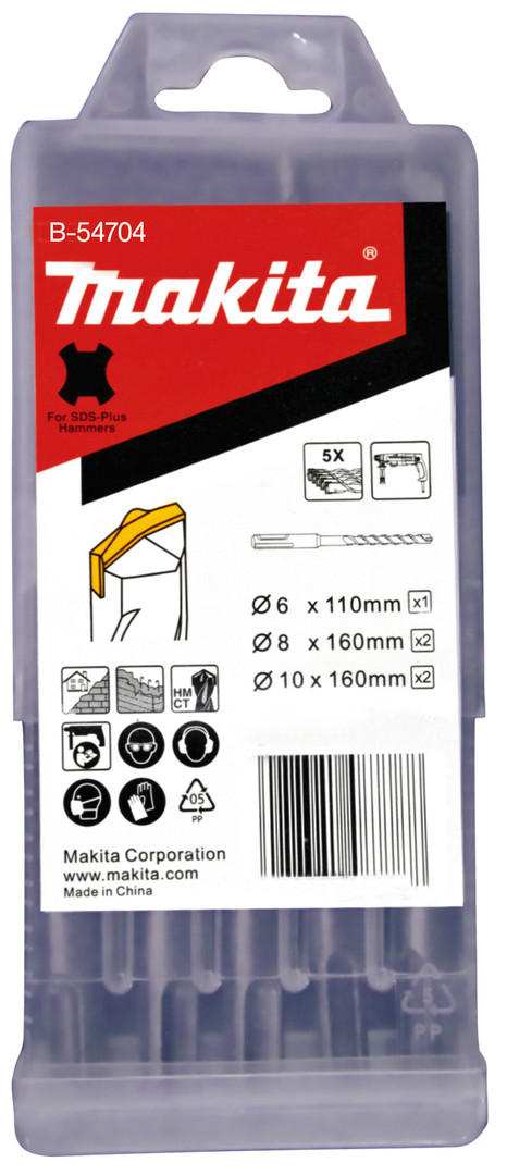 HM Bohrer-Set Ø 6 x 110mm, 2x Ø 8 x 160mm und 2x Ø 10 x 160mm mit SDS-PLUS-Aufnahme in Kunststoffbox