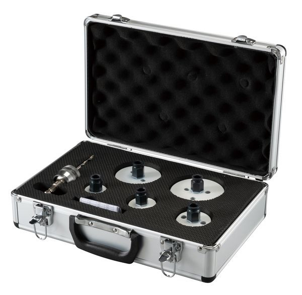 Lochsägen-Set mit EZYCHANGE-Schnellwechselsystem in den Größen Ø 32, 41, 51, 73 und 83 mm