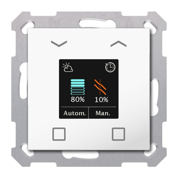 | Kurzbeschreibung | KNX Jalousietaster Smart 55 mit Farbdisplay, Reinweiß glänzend |