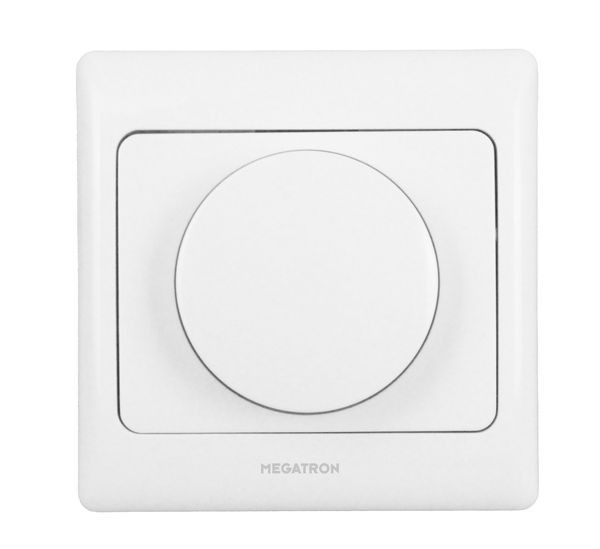 Universal-LED-Dimmer mit Drehschalter für LED-Lichtquellen und weißer Abdeckung. Garantierte Kompatibilität mit allen LED-Lampen und LED-Leuchten von MEGAMAN, MEGAMAN und LIGHTME. Hervorragende Funktionalität auch mit den meisten LED-Lichtquellen anderer Fabrikate. Auch für Halogen- und Glühlampen geeignet. Lineares, ruckfreies und flackerfreies Dimmen von 100 Prozent Helligkeit bis an die unterste Dimmstufe der Lichtquelle. Weißes Kunststoffabdeckung in schlichtem, neutralen Design, das gut mit anderen Schalterserien kombiniert werden kann. Das Gehäuse und der Drehknopf können abgenommen werden, um durch Abdeckungen anderer Schalterserien ersetzt zu werden (keine Kompatibilitätsgarantie).