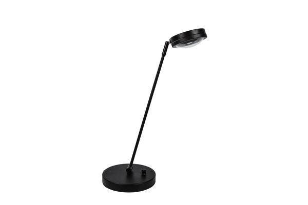OTTICA Mattschwarz ist eine elegante, platzsparende und dimmbare Design-Tischleuchte. Der flache Leuchtenkopf kann gedreht und geschwenkt werden. Die einzigartige GX53 BRIGHTEYE LED leuchtet die Arbeitsfläche des Schreibtisches weiträumig aus (90ø) und vermeidet störendes Streulicht. Die Leuchte wird mit dem Drehdimmer am Leuchtenfuá eingeschaltet und gedimmt (7 W/500 lm, dimmbar 100 bis 10%). Die Lichtquelle ist mit einem Handgriff wechselbar. Dadurch ist OTTICA wie alle Modelle aus der Ambiente-Serie von MEGATRON besonders servicefreundlich und nachhaltig nutzbar.