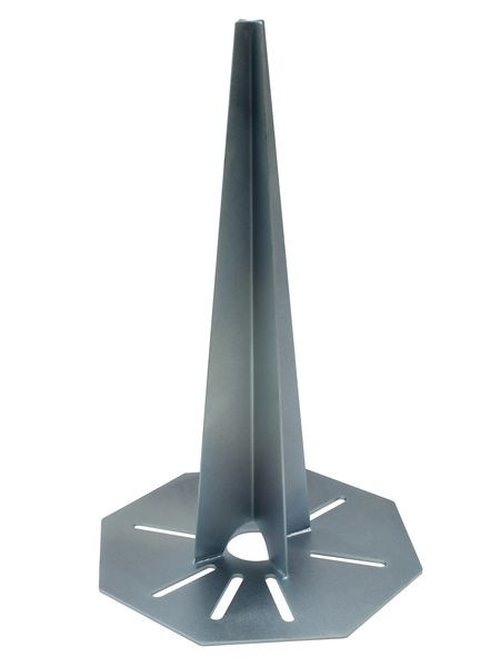 MT69047 Universal-Erdspieß für Pollerleuchten. Der Universal-Erdspieß von MEGATRON Pro ist für Pollerleuchten vieler Hersteller geeignet. Der Erdspieß wird anstelle einer ortsfesten Befestigung auf einem Fundamentsockel in weiche bis feste Böden gesteckt. Empfohlen für Pollerleuchten bis zu 5 kg Leuchtengewicht und 1 m Höhe. Robustes verzinktes Stahlblech. Vierzack 1,5 mm stark, Länge 304 mm. Trägerplatte 3 mm stark, achteckig mit 75 mm Seitenlänge (Außenmaße der Trägerplatte 185 x 185 mm). Länge der Diagonalen 200 mm. Mittige Kabeldurchführung. Acht Schraubschlitze (Länge 45 mm, Breite 6,9 mm). Wird mit dem Original-Montagezubehör der Leuchte an deren Unterseite montiert. Größter Lochkreis 140 mm. Kleinster Lochkreis 75 mm. Die Abstände der Verschraubungen der Pollerleuchte müssen sich innerhalb der Lochkreise befinden. Original-Zubehör für die MEGATRON Pro Pollerleuchten MT69042 und MT69043.