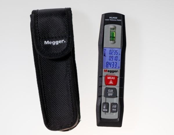 Der MLM50 Laser-Entfernungsmesser von Megger ist ein kompaktes, einfach zu bedienendes Laser-Entfernungsmessgerät. Es wird in einer stoßdämpfenden Schutztasche gemäß Schutzart IP54 aufbewahrt und verfügt über sicher und sanft zu bedienende Tasten. Mit einem Messbereich von bis zu 50 m bietet der MLM50 dem Benutzer entweder einfache oder kontinuierliche Messmodi und die Möglichkeit, Höchst- und Mindestmessungen schnell und einfach zu verfolgen.