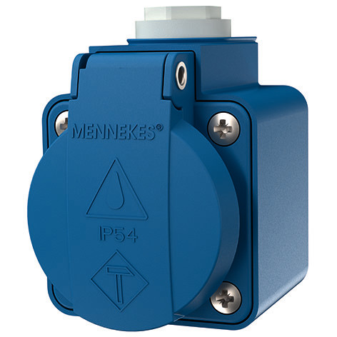 16A2P+E 230V SCHUKO-Wand-Steckdose blau, IP 44, deutsche Norm mit Klappdeckel mit Schraubklemme