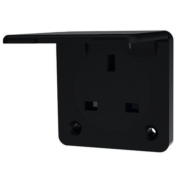 13A2P+E 230V Schutzkontakt Anbau-Steckdose BRITISCH Standard mit integriertem erhoehtem Beruehrungsschutz und Klappdeckel FL. 55,5 X 55,5 BL. 42,5 X 42,5