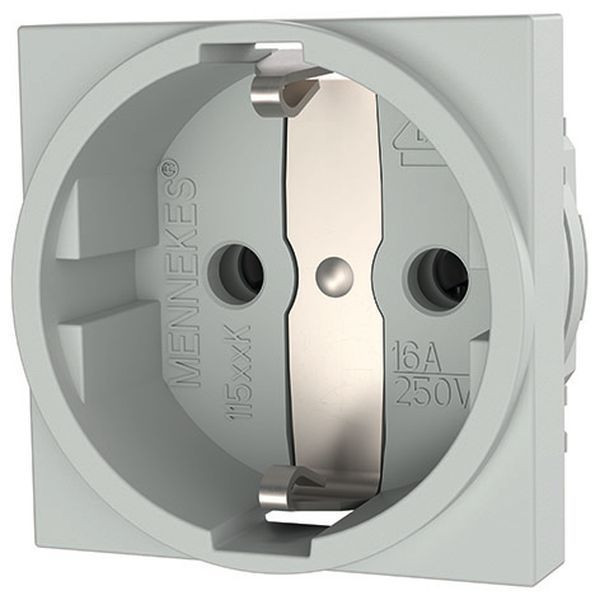 16A2P+E 230V SCHUKO-Steckdose grau ohne Klappdeckel deutsche Norm, rastbar fuer Kanaleinbau mit Steckklemme FL. 45 X 45 Leitungseinfuehrung von unten