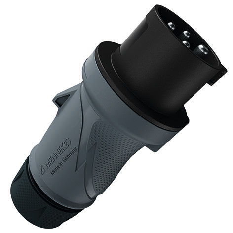 CEE Stecker PowerTOP Xtra R 32A 4P 7h 500V IP54 ergonomisches Gehaeuse gummierte Verschraubung Schraubtechnik hochwaermebestaendiger Kontakttraeger vernickelte Kontakte