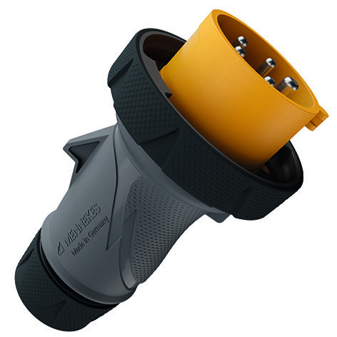 CEE Stecker PowerTOP Xtra R 32A 5p 4h 110V IP67/ IP69 Schraubtechnik - ErgoCONTACT hochwaermebestaendige Kontakttraeger vernickelte Kontakte ergonomisches Gehaeuse gummierte Verschraubung