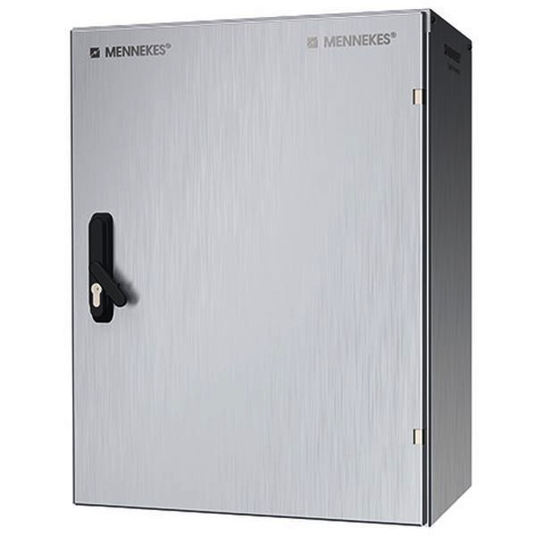 MENNEKES Aufputz-Verteiler "Gleichschliessend" Schutzart IP 44 Gehaeuse: 1 Edelstahlgehaeuse 1.4301 geschliffen K240 530x400x220 mm (HxBxT) 2 x Tragschienen im Gehaeuseboden; 2 x Einsteckdichtungen M32 und 2 x Messing-Verschlussschrauben M16 unten, Fronttuere mit Schwenkhebelgriff und Profilhalbzylinder Ohne Montageplatte 1 Wandlaschenset Bestell-Nr.90432000 Zeichn.-Nr.: 1MB437