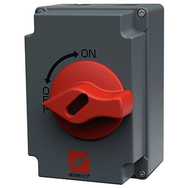 Lasttrennschalter 25A 3P+N+PE im AMELAN-Gehaeuse 170x118mm Schutzart IP 67, Farbe grau RAL 7000 Leitungseinfuehrungen: 2 M 25 oben offen und unten mit Verschlussstopfen