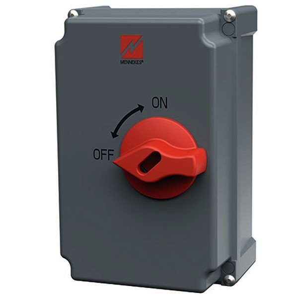 Lasttrennschalter 80A 3P+N+PE mit Hilfskontakten (1xS,1xoe) im AMELAN-Gehaeuse 263x168,5mm Schutzart IP 67, Farbe grau RAL 7000 Leitungseinfuehrungen: 1 M 40 und 1 M 20 oben offen 2 M 40 unten mit Verschlussstopfen