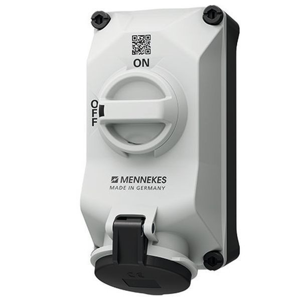 MENNEKES Wandsteckdose DUO 32A 5P 7h 500V IP44 X-CONTACT abschaltbar verriegelt anschlussfertig verdrahtet Kunststoffgehaeuse: Abmessungen 225x118 mm (L x B) Abschliessbar mit Vorhaengeschloss Oberteil Grau RAL 7035 Unterteil Schwarz RAL 9005 mit Doppelgewinde-Deckelschrauben Bestueckung: Lasttrennschalter 3P + N + PE Leitungseinfuehrung: Unterteil 180° drehbar Anschluss von oben und unten moeglich Anlieferzustand 2 x M25 unten (verschlossen) 1 x M25 und 1 x M32 oben (verschlossen) 1 x M25 Kabelverschraubung beiliegend