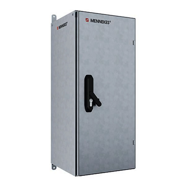 MENNEKES Aufputz-Verteiler als Wandgeraetestecker Schutzart IP 44 Gehaeuse: 1 Edelstahlgehaeuse, 1.4301 geschliffen, K240 700x300x310 mm (HxBxT) Bestueckung/Anschlussmoeglichkeit: 1 x CEE Anbaugeraetestecker 63A 5p 1h >50V (IP 67) Klemme fuer 1 Leitung bis 5 x 50mm² (flexibel max. 35 mm²) Leitungseinfuehrung: 2 x Leitungseinfuehrungstuelle unten,geeignet fuer Leitungsdurchmesser von 13-43mm 1 x Messing - Verschlussschraube M20 unten Fronttuer mit Schwenkhebelgriff und Profilhalbzylinder bei gesteckter Kupplung verschliessbar; 1 Erdungsschraube M6 innen 1 Set Wandbef.laschen (90432000) Gesamtgewicht: ca. 30 KG