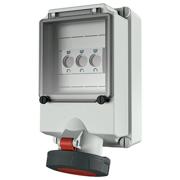 63A5P 6H400V Wanddose IP 67 mit Rahmenklemme und X-CONTACT Sich.. DO 2 3P (E18)