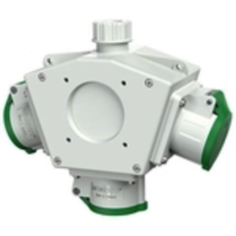 MENNEKES DELTABOX anschlussfertig verdrahtet Schutzart IP 44 Gehaeuse: 1 Polycarbonat-Gehaeuse elektrograu RAL 7035 Bestueckung: Pos.01 3 CEE-Steckdosen 16A 4p 50V - 450V 10H (1392) Leitungseinfuehrung/Anschlussmoeglichkeit: 1x M32x1,5 mit Verschraubung Klemme fuer 1 Leitung bis 5 x 6 mm² mit innenliegender Zugentlastungsschelle und montiertem Aufhaengehaken 1 Aufhaengebuegel (lose)