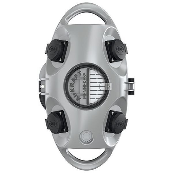 MENNEKES AirKRAFT Anschlussfertig verdrahtet Schutzart IP 44 Gehaeuse: 1 AMAPLAST-Gehaeuse schwarz (aehnlich RAL 9005) und anscharniertem Geraetedeckel (silber) Absicherung unter transparenter Betaetigungsklappe Bestueckung:/Absicherung: 4 Schuko-Steckdosen 16A 2p+E 230V ohne Absicherung Leitungseinfuehrungen: oben verschlossen, zum Ausbrechen 1x M32, 1x M25, 2x M20 1x Durchfuehrung fuer Druckluftanschluss seitlich verschlossen, zum Ausbrechen 1x M25 einschl. Montageoesenset (102070)