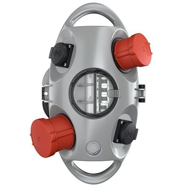 MENNEKES AirKRAFT Anschlussfertig verdrahtet Schutzart IP 44 Gehaeuse: 1 AMAPLAST-Gehaeuse schwarz (aehnlich RAL 9005) und anscharniertem Geraetedeckel (silber) Absicherung unter transparenter Betaetigungsklappe (4TE) Bestueckung:/Absicherung: Pos.01 1 CEE-Steckdose 32A 5p 400V Rapido Pos.02 1 CEE-Steckdose 16A 5p 400V Rapido 1 LS-Schalter 16A 3p C Pos.03 2 Schuko-Steckdosen 16A 2p+E 230V 1 LS-Schalter 16A 1p B Einspeisung/Anschlussmoeglichkeit: Leitungseinfuehrungen: oben verschlossen, zum Ausbrechen 1x M32, 1x M25, 2x M20 1x Durchfuehrung fuer Druckluftanschluss seitlich verschlossen zum Ausbrechen 1x M25 einschl. Montageoesenset (102070)