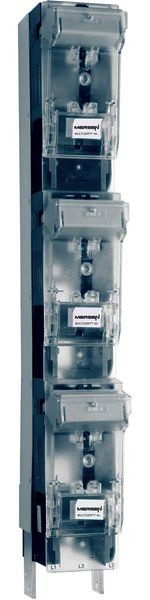 | Kurzbeschreibung | Sicherungslastschaltleiste NH Größe 4a AC690V 1600A 3x1-polig Abgang unten für ein 185 mm Sammelschienensystem mit Anschluss 2x M12 |
