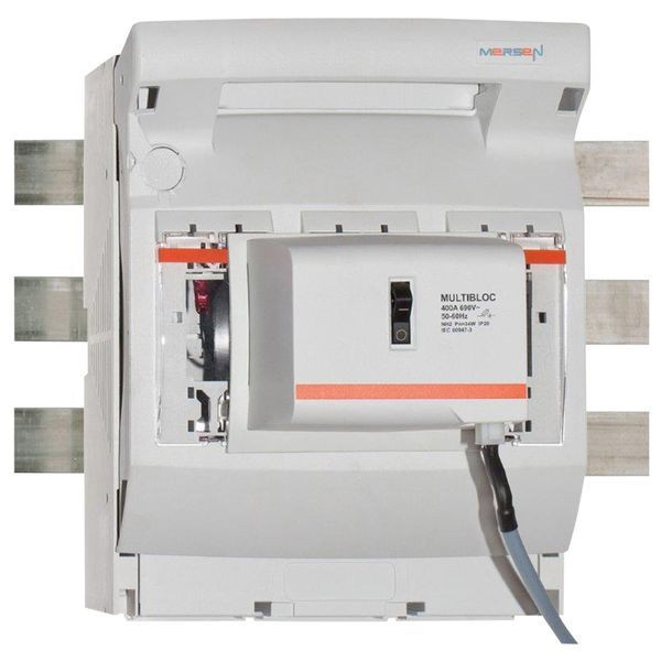 Die Produktpalette der MULTIBLOC 2.RST8 umfasst NH-Sicherungs-Lasttrennschalter für 400 A. Die Produkte sind in 3-poliger Ausführung verfügbar und geeignet für 40 und 60mm Sammelschienen-Systeme. MULTIBLOC NH-Sicherungs-Lasttrennschalter unterschiedlicher Baugrößen können mit passenden Abdeckungen auf eine Ebene gebracht werden, wodurch eine gemeinsame, flache Zentralabdeckung möglich ist. MULTIBLOC Größe 2 sind für NH-Sicherungs-Einsätze nach IEC/EN 60269-2, VDE 0636-2, Größe 2, 400A entwickelt. Das System ist ein Modulsystem, in dem die verschiedenen Produkte optimal kombiniert werden können. MULTIBLOC ermöglichen dem Anwender rasche und einfache Installationsmöglichkeit sowie hohe Sicherheit bei der Installation und Wartung. Dieser NH-Sicherungs-Lasttrennschalter ist mit 3 Anschlussschrauben M10 und vormontierter elektro-mechanischer Sicherungsüberwachung MZS mit galvanischer Trennung ausgestattet.