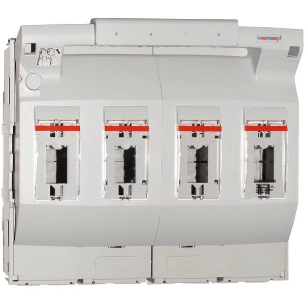 Die Produktpalette der MULTIBLOC 3.ST8 umfasst NH-Sicherungs-Lasttrennschalter für 630 A. Die Produkte sind in Aufbauvariante und 3- und 4-poliger Ausführung verfügbar. MULTIBLOC NH-Sicherungs-Lasttrennschalter unterschiedlicher Baugrößen können mit passenden Abdeckungen auf eine Ebene gebracht werden, wodurch eine gemeinsame, flache Zentralabdeckung möglich ist. MULTIBLOC Größe 3 sind für NH-Sicherungs-Einsätze nach IEC/EN 60269-2, VDE 0636-2, Größe 3, 630A entwickelt. Das System ist ein Modulsystem, in dem die verschiedenen Produkte optimal kombiniert werden können. MULTIBLOC ermöglichen dem Anwender rasche und einfache Installationsmöglichkeit sowie hohe Sicherheit bei der Installation und Wartung. Dieser 4-polige NH-Sicherungs-Lasttrennschalter ist mit 8 Anschlussschrauben M12 ausgestattet.