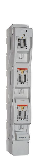 MULTIVERT NH-Sicherungs-Lastschaltleisten erfüllen sämtliche Funktionen eines NH-Sicherungs-Lasttrennschalters. Die Konstruktion ist für die Direktmontage auf Sammelschienen in dreipoliger Anordnung ausgelegt. MULTIVERT 250A Schaltleisten können auf 185mm Sammelschienen-Systemen direkt montiert werden. MULTIVERT 250A Schaltleisten sind für NH-Sicherungs-Einsätze nach IEC/EN 60269-2, VDE 0636-2, Größe 1, 250A entwickelt. Das System ist ein Modulsystem, in dem die verschiedenen Produkte optimal kombiniert werden können. MULTIVERT ermöglichen dem Anwender eine rasche und einfache Installationsmöglichkeit sowie hohe Sicherheit bei der Installation und Wartung. Alle MULTIVERT sind in geschlossenem Zustand mit Vorhängeschloss versperrbar oder plombierbar. Diese Ausführung wird mit V-Anschluss für V-Anschlussklemme Größe 1,2,3 ausgeliefert.