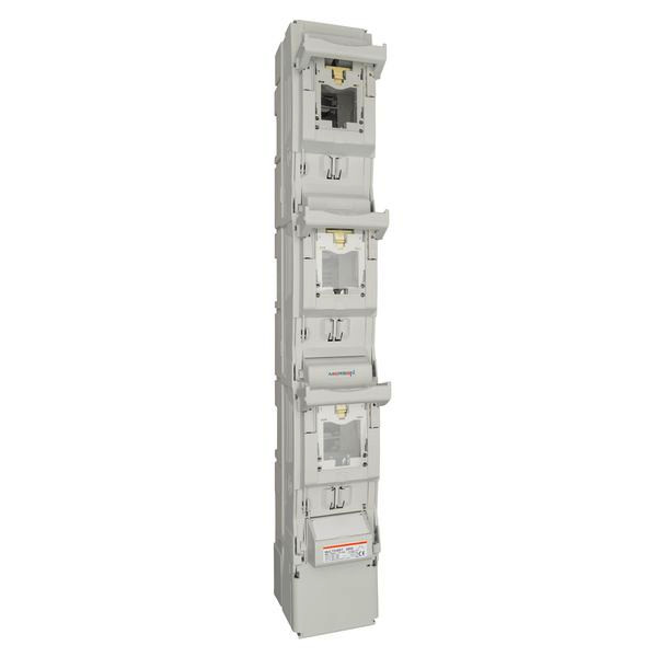 MULTIVERT NH-Sicherungs-Lastschaltleisten erfüllen sämtliche Funktionen eines NH-Sicherungs-Lasttrennschalters. Die Konstruktion ist für die Direktmontage auf Sammelschienen in dreipoliger Anordnung ausgelegt. MULTIVERT 400A Schaltleisten können auf 185mm Sammelschienen-Systemen direkt montiert werden. MULTIVERT 400A Schaltleisten sind für NH-Sicherungs-Einsätze nach IEC/EN 60269-2, VDE 0636-2, Größe 2, 400A entwickelt. Das System ist ein Modulsystem, in dem die verschiedenen Produkte optimal kombiniert werden können. MULTIVERT ermöglichen dem Anwender eine rasche und einfache Installationsmöglichkeit sowie hohe Sicherheit bei der Installation und Wartung. Alle MULTIVERT sind in geschlossenem Zustand mit Vorhängeschloss versperrbar oder plombierbar. Diese Ausführung wird mit 3 Einpressmuttern M12 ausgeliefert.
