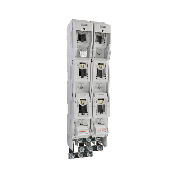 | Kurzbeschreibung | Sicherungslastschaltleiste Doppel NH Größe 2 AC690V 3-polig 800A für ein 185 mm Sammelschienensystem mit Anschluss 4x M12 Bolzen |