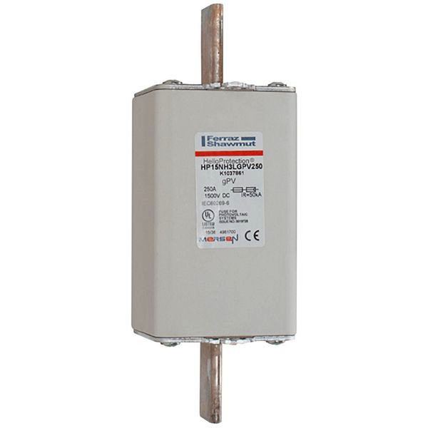 | Kurzbeschreibung | Sicherungseinsatz NH gPV Größe 3L IEC DC1500V UL 250A mit spannungsführenden Grifflaschen sfü |