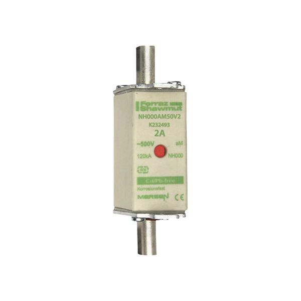 | Kurzbeschreibung | Sicherungseinsatz NH aM Gr.000 AC500V 2A mit spannungsführenden Grifflaschen sfü und Doppelkennmelder |