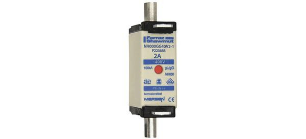 | Kurzbeschreibung | Sicherungseinsatz NH gG Größe 000 AC400V 2A mit spannungsfreie Grifflaschen SGL und Doppelkennmelder |