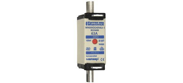 | Kurzbeschreibung | Sicherungseinsatz NH gG Größe 000 AC400V 63A mit spannungsfreie Grifflaschen SGL und Doppelkennmelder |