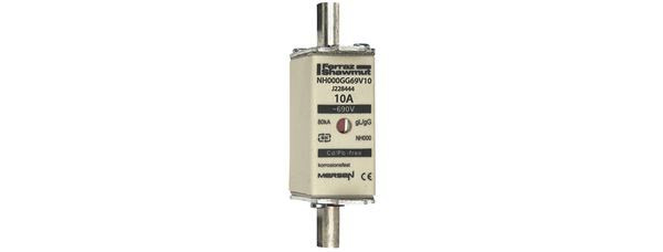 | Kurzbeschreibung | Sicherungseinsatz NH gG Gr.000 AC690V DC250V 10A mit spannungsführenden Grifflaschen sfü und Doppelkennmelder |