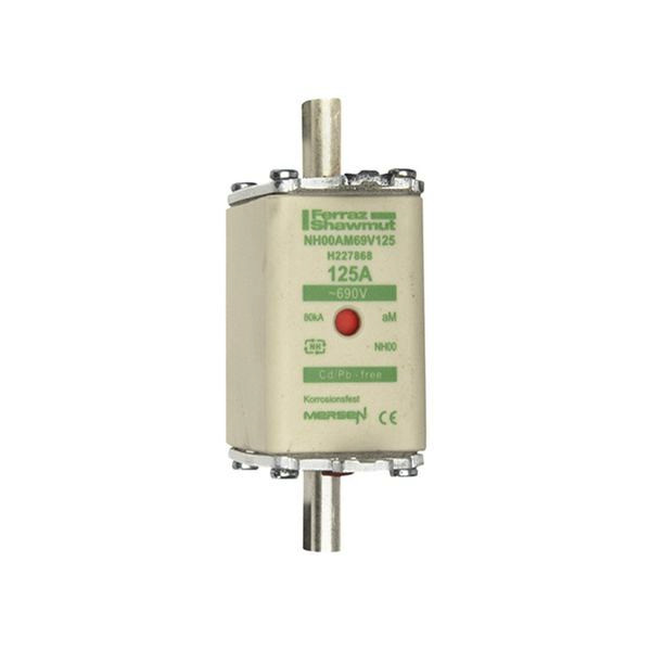 | Kurzbeschreibung | Sicherungseinsatz NH aM Gr.00 AC690V 125A mit spannungsführenden Grifflaschen sfü und Doppelkennmelder |