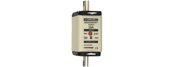 | Kurzbeschreibung | Sicherungseinsatz NH gG Größe 00 AC690V DC250V 50A mit spannungsfreie Grifflaschen SGL und Doppelkennmelder |