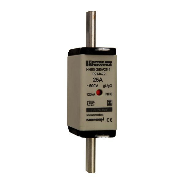 | Kurzbeschreibung | Sicherungseinsatz NH gG Größe 0 AC500V DC250V 25A mit spannungsfreie Grifflaschen SGL und Doppelkennmelder |
